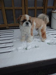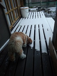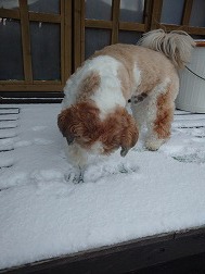 恐る恐る歩き、それでも雪はしっかり食べています。