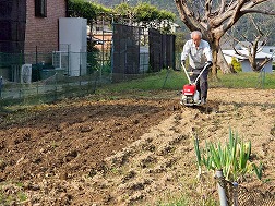 冬野菜を全部処分して、除草もかねて畑全体を耕しました。