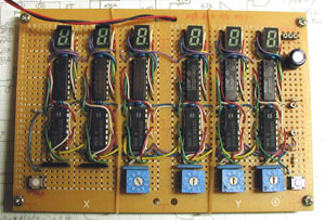 CMOS標準ロジックICで構成された実験用基板6桁のBCD(10進)同期式プリセッタブル/アップ/ダウンカウンター基板、ロジック回路製作時に計数監視用に使用します。 |