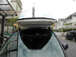 ボートの全長は3.2メーター、ルーフキャリヤ(ボートホルダー)の幅は1・5メーター、これは安定して車載する為の理想のスパンかも。 |
