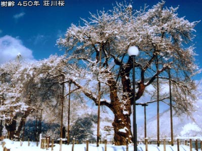 冬雪降る中の荘川桜 とても美しいそうです。 出きれば冬に一度行ってみたいですネ。 |