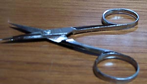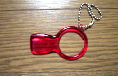 小さな鋏 長さ 8cm ・ 幅握り手の所 4cm ・ 重さ 5g この鋏は指も入り難いですがとても軽くて小さいので 両手に片側ずつ持って切ったりします。 ペットボトルと缶明け 長さ7cm ・ 幅4cm ・ 重さ5g 大阪支部の集会で買ったのですが小さくてとても便利です。 力が出ない時は持ち手をヘラ等で少し長くします。 トイレのレバー 長さ30cm ・ 幅 (直径) 2cm ・ 重さ90g 公衆のトイレにはいって何に困るか 用を足した後流すのに硬くてレバーが動かない時 これをレバーに差込押すと簡単に流せます。 ステンレスのパイプで作ってあります。 先に針金でトイレに引っ掛ける様にしてあります。 (その針金はパイプの中を通し反対側はゼムピンで留める) |