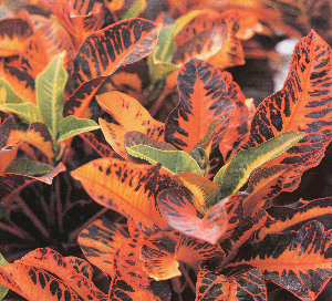 このごろ眠たくて仕方がありません。ハンギングは、土作が難しいのです。パンジーの植えた後にインパチェンスを植えている方が、インパチェンスを、全部枯らしていました。いくら植えても枯れるでしょう、冬の対策をした土に夏の花のインパチェンスを、植えるのですから。インパチェンスの植物としての性質を考えれば、土の配合が合わないと気付くはずなのですが、残念なことです。ハンギングの土の配合には、シュエット独自の長年のノウハウがあります。植物ごとに配合を、変えているのです。植える植物に最適な土の配合を、調合してお客様にお渡ししています。特に難しいのは、観葉植物の植え替えのときです。(写真はクロトンです) |