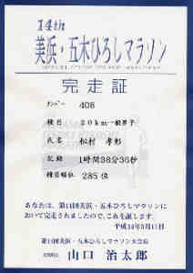 〇毎年、一月の第三日曜日に開催されている上田上体協主催の「田園ミニマラソン」大会。成人の日が第3月曜日になった関係で3連休の真ん中の日ということで、参加しやすくなった感じがします。今年も役員として、受付の役で手伝いましたが、いつも参加している3kmの部に、出場しました。天候は快晴で、昼間は14度まで気温が上昇して、4月並の暖かさでした。 ○今年のエントリーは6kmと2kmに集中して、3kmは穴場になってしまいました。その結果8名で、6kmの人と一緒に走ることになりました。 〇結果は昨年よりタイムはよくなって14分30秒。コースが実際には3.2kmあるので、まあ、ペースとしては1kmを4分半で走ったタイムでした。丁度草津ハーフマラソンの14kmまでのタイムと一緒です。出発して最初の400mくらいがゆっくりなのがタイムとしては響いていると思っています。それでも中学生も入っての3位ですから、よしとしましょう。賞状と賞品もありました。 |