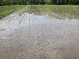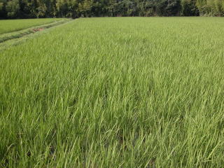| 我が家は肥料商であり農家でもあるので、新しく販売された肥料や販売予定の試供品を自分の田で使ってみて、肥効を確認してから得意先農家にお奨めする様にしています。今年は究極のコシヒカリ用スミショート入り一発肥料:「楽一」と、肥料ではなく土壌改良資材ともいえる「ニュートリスマート」の肥効試験を始めました。 |