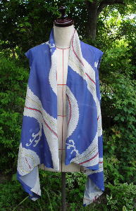 夏の絽の着物で変型ベストを作りました。 ちゃんと原型が入っているので 着ていて後ろに逃げません。 歩いていると裾が揺れて その上着やすいので お勧めです。 動きのある模様が気に入っています。 フリーサイズです。