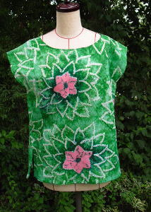 有松絞りの浴衣地で T-ブラウスを作りました。