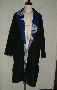 新品の黒い絽と 絹紅梅の着物地で 2枚重ねのコートを作りました。 大きな蜻蛉の模様です。 どちらを上にしても それぞれ1枚づつでも着ていただけます。 冷房対策などに 重宝すると思います。 着丈 100cmです。