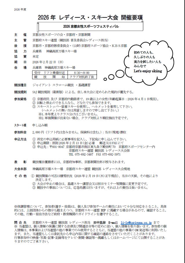 スキーを通じて会員相互の親睦と技術の向上を図ります