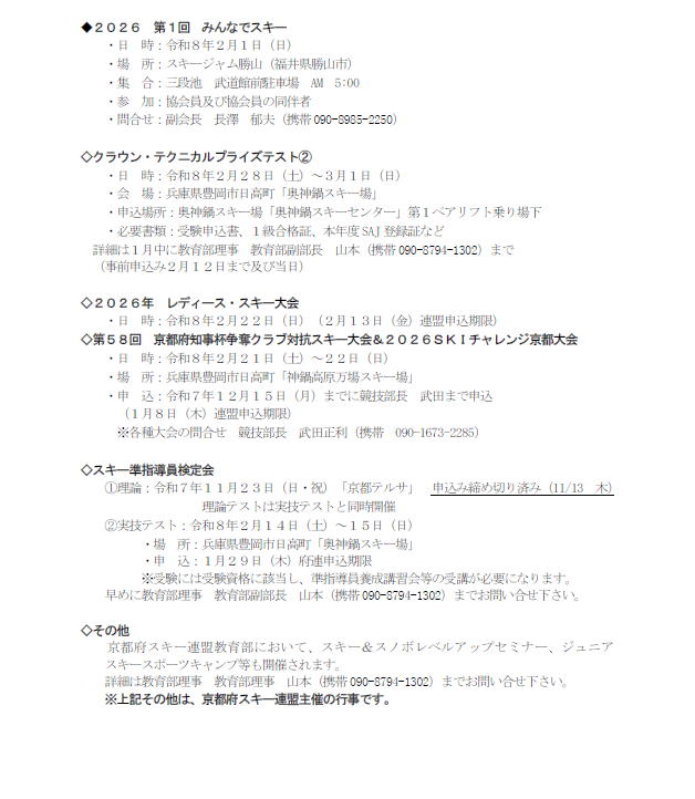 スキーを通じて会員相互の親睦と技術の向上を図ります