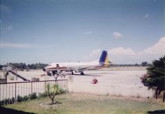 1998年4月21日フィリピン・カリボ空港にて撮影。 広報部員が仕事でフィリピンのパンダン島へ水道パイプライン工事ボランティア活動へ行った際にマニラ行きのフィリピン航空便を空港で待っていたら突然着陸してきた飛行機です。元日本エアシステムの機体です。垂直尾翼のJASというロゴを紺色で塗り潰して、窓上にAir Philippinesというロゴが書かれていました。