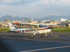 2008年7月10日八尾空港にて撮影。 会長と広報部員が何となく見に行った八尾空港で駐機していたセスナです。この日は、訪れた時刻が遅かった為か、ヘリコプター以外の離発着は見られませんでした。そんな中一番間近で見られた飛行機がこいつでした。 この飛行機は、1991年4月に愛知県刈谷市で模型飛行機と接触事故を起こしたことのある前科者のようです。