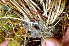 イトミミズやアカムシは、土を食べてウンチをします。このウンチが、稲にとっては栄養満点なんです。写真は、稲の根元に群がるイトミミズです。イトミミズのエサは米ぬかです。
