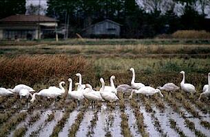 農薬がなくて生き物がいっぱいいる不耕起の田んぼには、渡り鳥がたくさんやって来ます。佐渡島では、トキを野生化するためのエサ場に、不耕起の田んぼが期待されています。トキはドジョウが大好物らしいですね。
