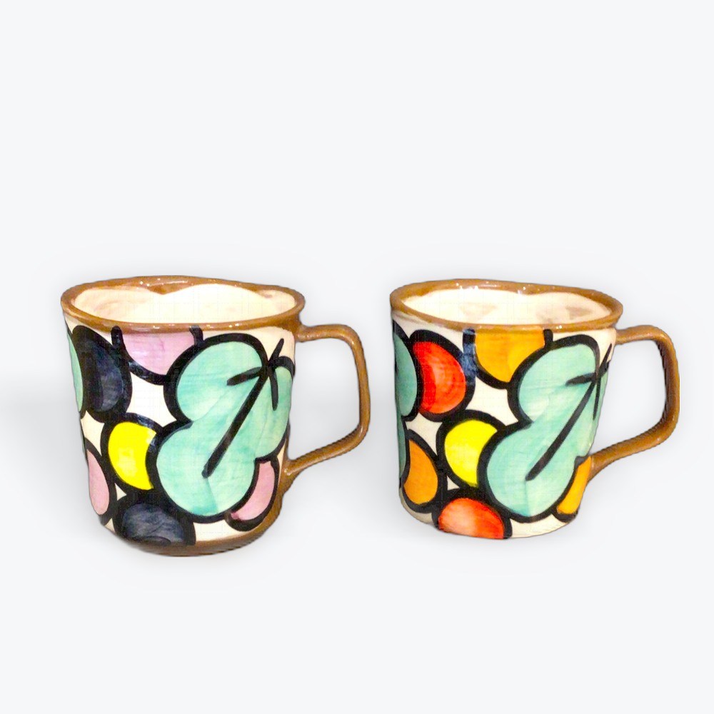 ステンドガラスのような絵付けがかわいいマグカップ。今年人気のうつわです。