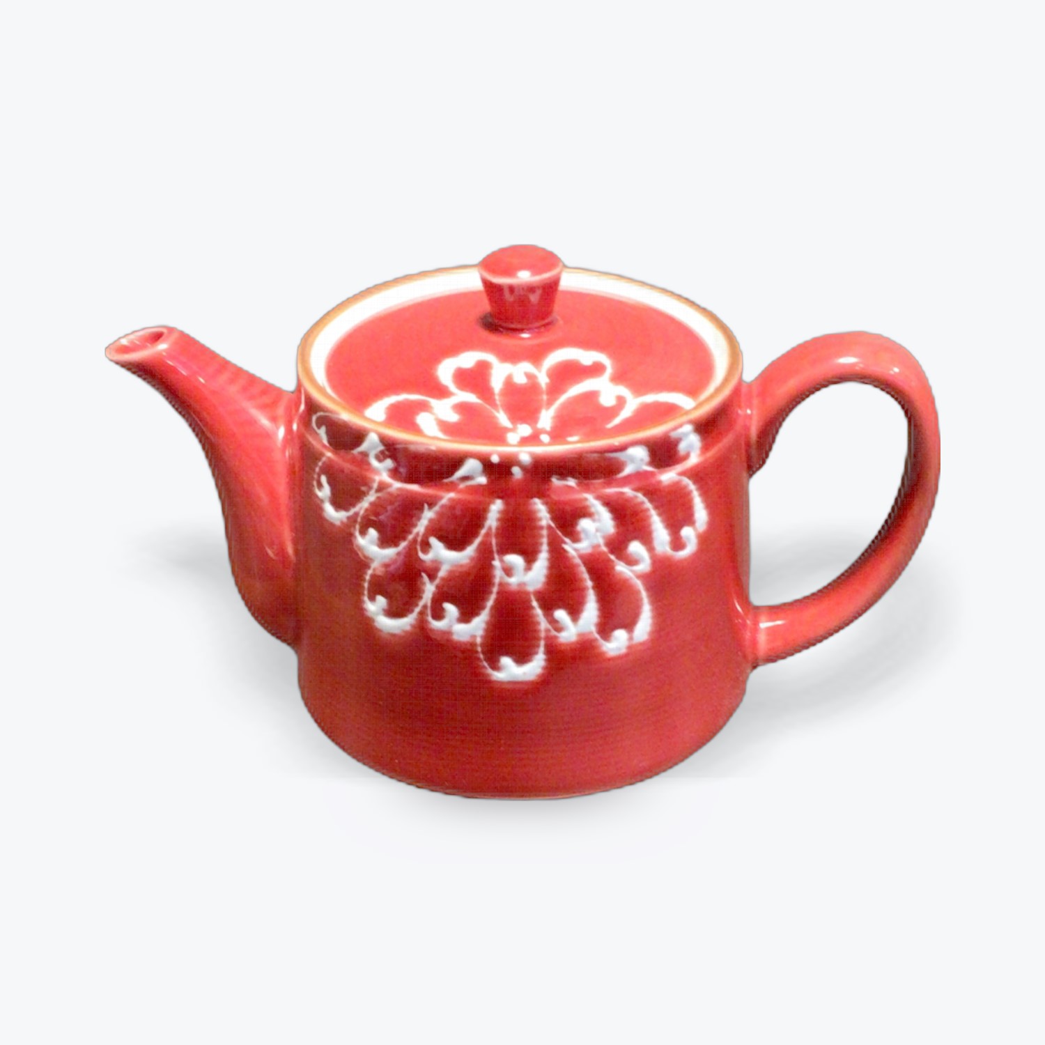 菊の花びらをデザイン化したシンプルなポット。鮮やかな赤に撥水の手描きの一品です。