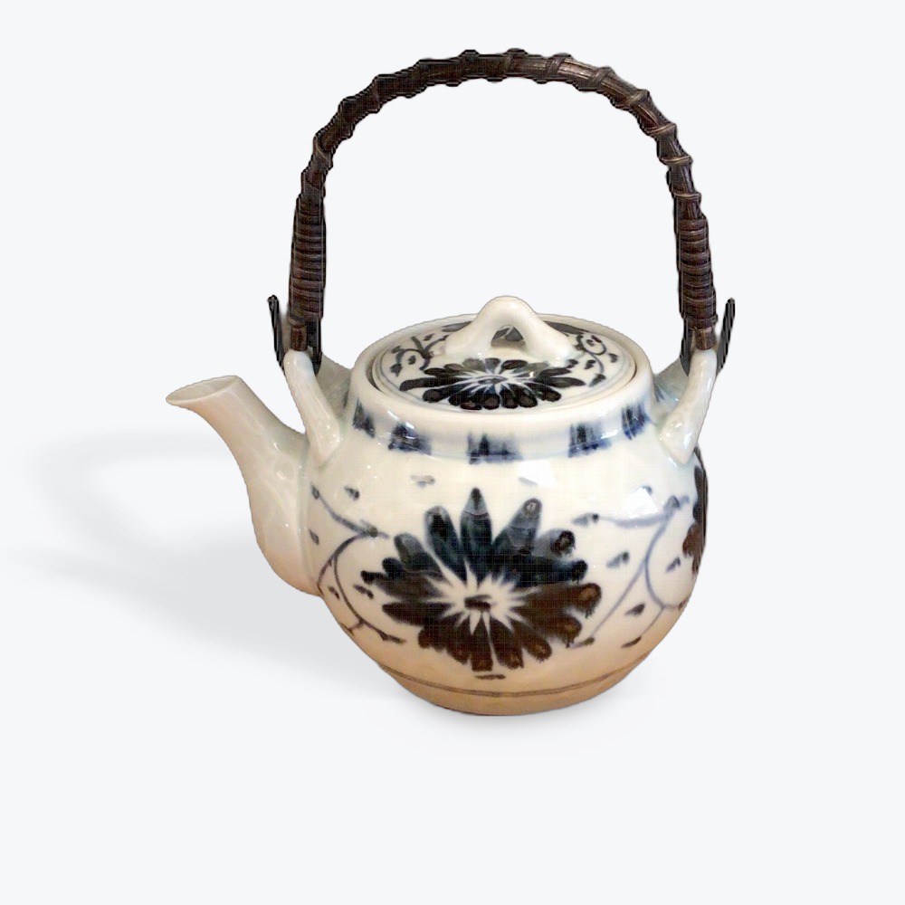 カップ網付き 落ち着きのある呉須唐草が絵付け。使いやすい大きさの土瓶です。