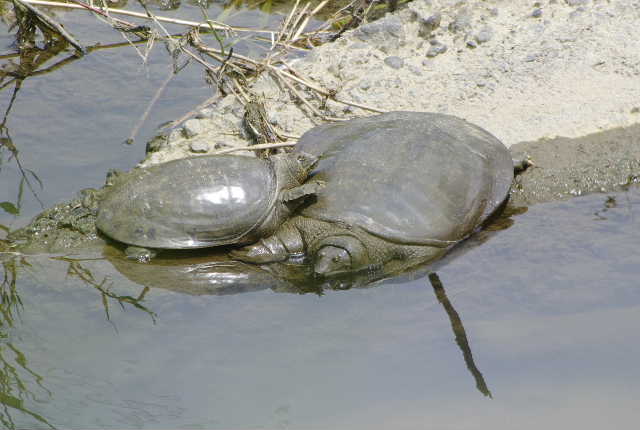 家の近くの川には鯉、鮒、アブラハヤ等の魚や、鴨、鵜、カワセミ等の鳥が見られる自然豊かな場所だ。その中に写真のようなスッポンを時々見かける。一目で亀とは違うし臆病らしく人の姿を見ると直ぐに水の中へ逃げ込む。ブサイクのようでも何となく可愛くもあり、注意して見ているとある程度の数が居そうである。摂って食われないようにと思う。2019.09.06