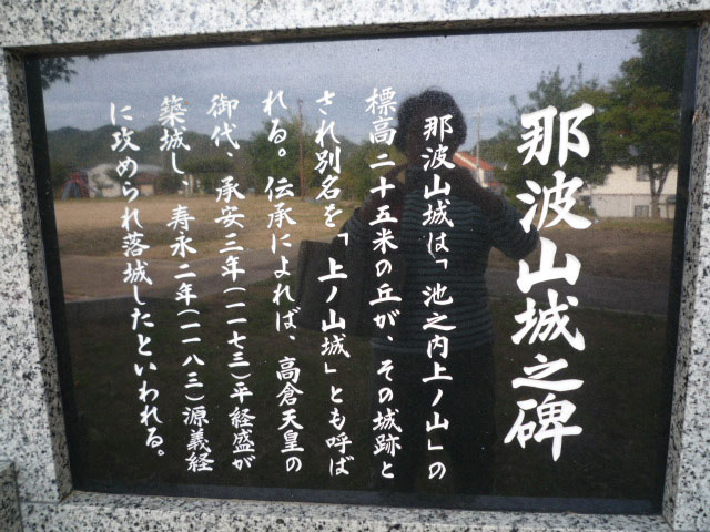 | *1『「正統那波史」によると、那波浦の東にある磯上の陸村のはずれの丘の上に(「位置は今の池の内と陸との中間に在る小丘とのみで、それと覚しき跡はない」と書いている)が現在は池の内上の山、標高25メートルの丘がその城跡とされている。(日本城郭大系) 承安3年(1173)平経盛が築城した那波城があった。経盛は寿永3年(1184)源義経に攻められて、城を保ち得ず、那波浦の西口にあった雨乞山城にこもり善戦したが、この城も北口の光明山城が落城したので、城を捨てて佐方に逃れようとした。 一方義経勢もこの城が容易に抜けないので、岡部六弥太、佐々木高綱、弁慶ら諸将と軍議をした。 たまたま、佐方村から、この城に通ずる間道出入り口を密告に来た老婆があったので、義経は大いに喜び、得たりとばかり手兵を間道より攻め入らせたため、遂に雨乞城は落城し経盛は自刃んして果てたという。』*1 |
