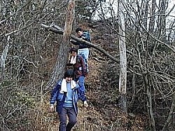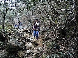 鶏冠山から天狗岩に向けて、けっこう急な下り道が続く。 |