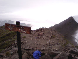 ガスの槍ヶ岳山頂にて |