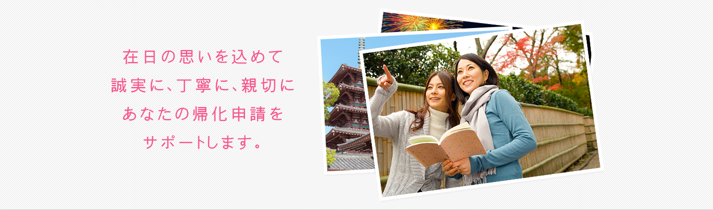 特に帰化申請は一生に一度の大切な手続きです。同じ在日の気持ちを理解して帰化手続を最後までしっかりとサポートしていきます。