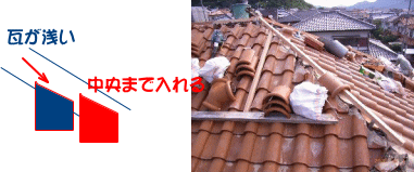 棟部分の瓦を取りのけて新の瓦を長めに平行四辺形に切って