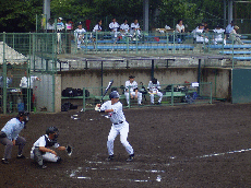 ・身長が高く、チーム1(多分)の俊足。ひょっとしたら、一番肩が元気で、強 肩かも! ・ベンチの機会が多いが、長年ベンチから試合を見ているので、各選手の動 きを良く把握している。 ・H17年に入り、やっと出席率が上昇。 ・日頃は消息不明 |