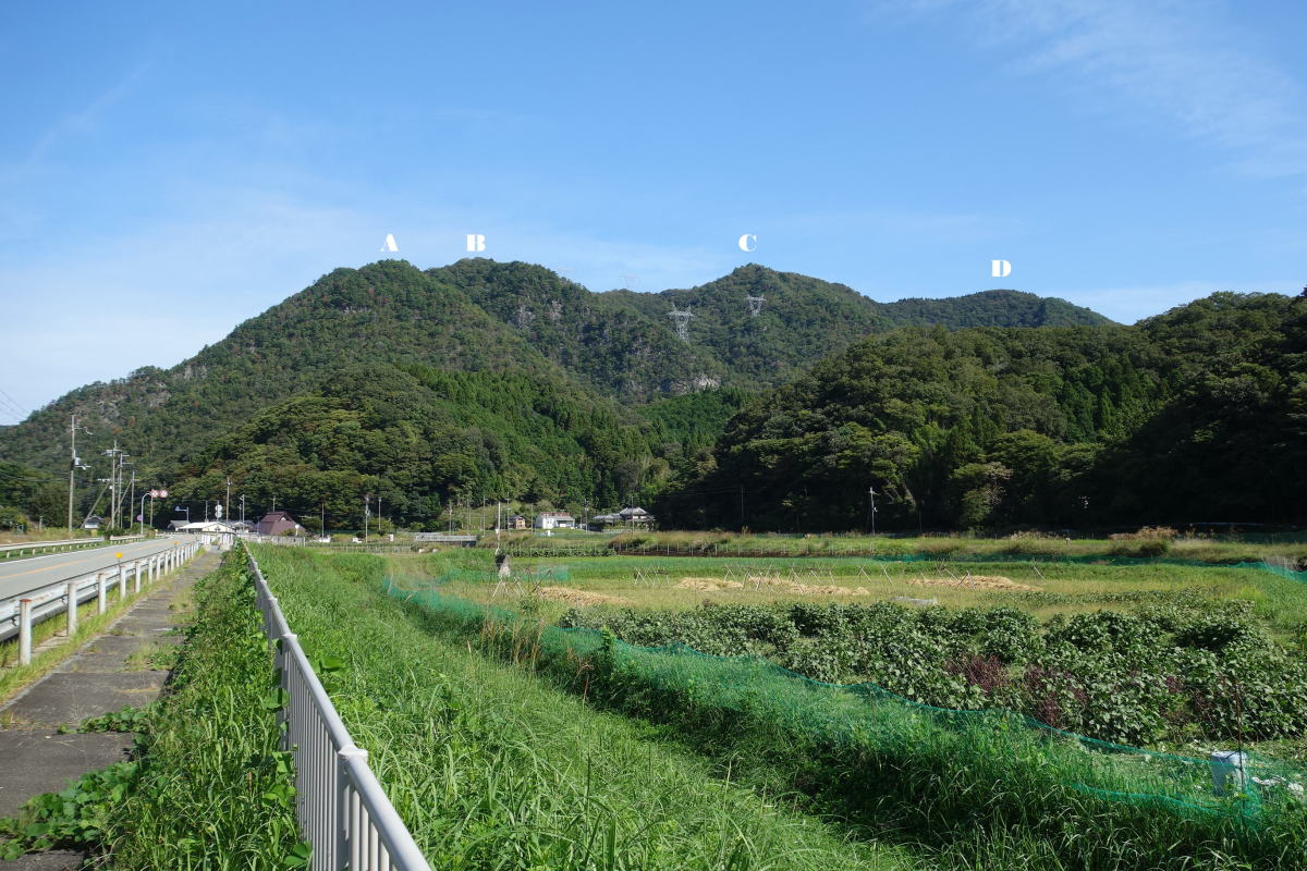 というのは上でも少し述べたように、そのピークの位置が定まっていないのである。(国道173号線から見た画像のDが地図上のピーク)