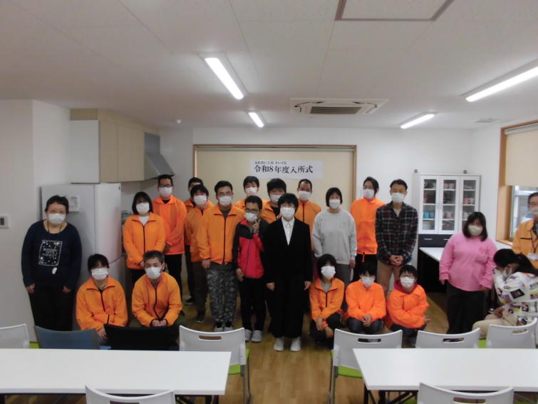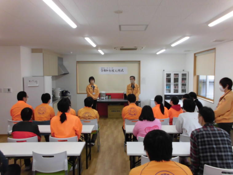 わーくるの就労継続支援B型や生活介護、就労支援を利用される利用者様が緊張しながら、挨拶をしました。