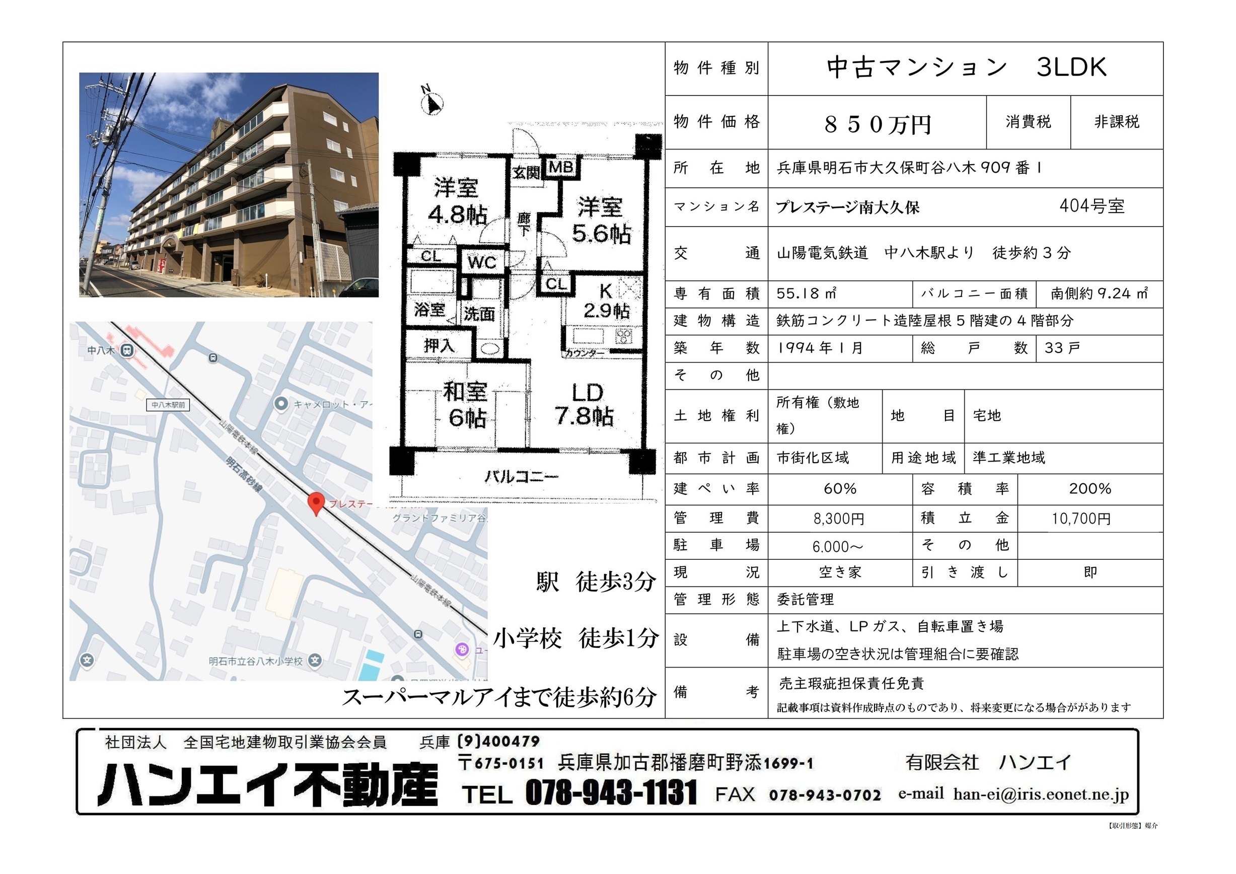 売り 中古マンション 明石市 プレステージ南大久保 4階のお部屋 850万円 (分譲マンション3LDK) (所在地)明石市大久保町谷八木 (交 通)山電谷八木駅より徒歩約3分 詳細資料はこちらから⇒ |