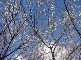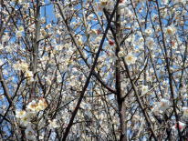 | 2月20日(金) 晴れ 山麓窯の梅園 今日もお出かけ、友達が何処かに行こうと言って誘ってくれた。 お昼からにして 13時の約束成立 さて何処に行こうか 岡山の備前辺りの2号線沿いに、梅が咲いているらしいとの情報 もしかしたら、以前Tさんに、連れて行ってもらったところかも 車を走らせた。漠然との情報なので、自分の知っている処に行った。 梅祭りには、少し早いのか人はまばらだった。 まず目に入ったのは、枝垂れの紅梅だった。梅園の中央の道を 通ると左右に蕾を一杯付けた梅林が開けた。続く裏山へ梅の導くままに登った。 青い空 白い梅 そこは、心を酔わせる、素敵な空間であった |