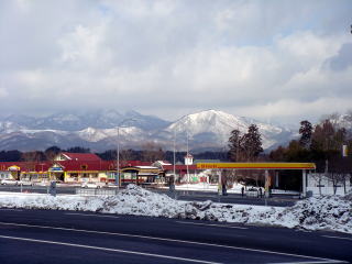 | 米子自動車道に入った辺りから雪が見えてきた 蒜山の山々は、綺麗な雪景色だった。 境港へ |