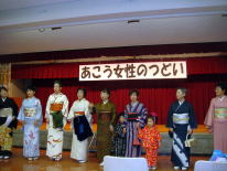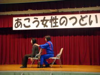 | 2月21日(土) 晴れ 赤穂女性のつどい 10時から 赤穂市民会館大会議室で、連合婦人会主催で あこう女性のつどいが行われた。私も参加 日赤家庭看護指導員による 癒しの看護 やさしいスキンシップの仕方の実演 ・非常食アルファ米の調理の仕方と試食 ステージ発表として ・着物ファッションショー(箪笥に眠っている着物などを着て) ・コーラス(御崎婦人会)私も出演 ・3B体操部の元気な演技 この会に華を添えた。 会場の周りには、会員の作品を展示 抹茶・コーヒーの喫茶コーナーなど 集う事きらう風潮の昨今、多くの人と触れ合って 豊かな人生を送りたい |