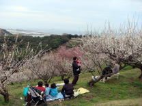 | 島津久子様の歌碑 | 三代の家族揃っての梅見 | 山裾の菜の花畑 |