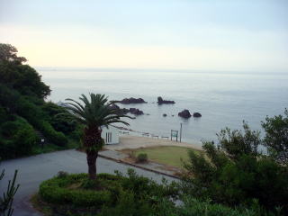 6月25日(木) 晴れ 散歩 5時から散歩、あたりは、静かで空気もひんやりと優しい 山あり海あり、鳥のさえずりに、耳を傾け 海に出ると 規則正しい波の音、太陽が雲の間から顔を出して、光の橋を掛ける。 こんな景色を、独り占めできるなんて、一番好きな時間である。 |
