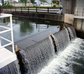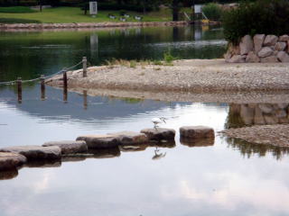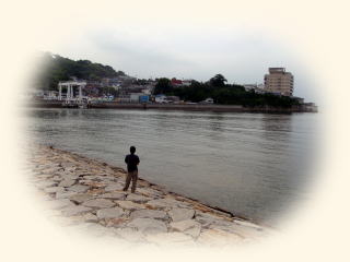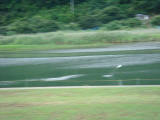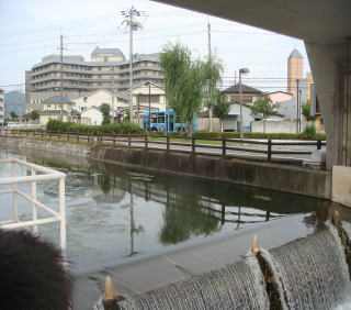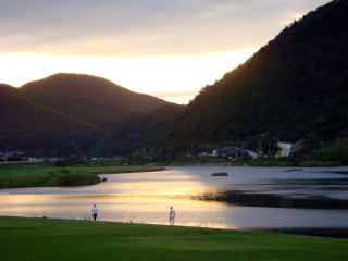 7月30日(木) 晴れ 千種川の朝 本当に綺麗ですね。澄んだ水、刈り込まれた青い芝生 朝の光が静かな川の水面を黄金に染ます。 なんの音だろう そうです。魚の跳ねる音です。大ジャンプに ジャンプ、ステップジャンプと 三段跳びをしています。魚たちは喜んで我が物顔に飛び跳ねています。 ジョキングする人ウォーキングする人朝の空気を一杯吸って、 朝起きした者だけが得る。清しい時です。 昼に通り掛かった時には、もうあの顔ではなかった。。 |