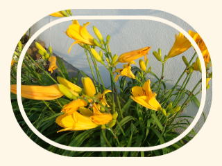 6月29日(月) キスゲ カンゾウ 今年もいつもの処に、 キスゲ咲いているだろうかと、散歩コースを 変更して見に行く。 咲いていたけれど、ほんのひと株 去年は沢山咲いていたのに 海岸の崖の上に咲いている。 消えないで、いつまでも 季節が来たら咲いて 楽しませてと願った。 |
