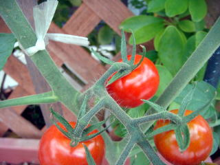 | 7月2日(木) 晴れ うまい 毎日毎日見つめて、トマトが赤く色づいた。どうだろう味は、 つまみ食い 甘くて美味しい。 |