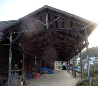 7月15日(水) 晴れ 塩倉庫跡 朝の散歩のコースを変えて古い建物が残っている処に行ってみた。 今私達が住んでいる処は、昔広い塩田が広がっていた。 作業場として使われたであろ、その名残の建物が残っている。 通りかかると、知り合いの漁師さんに出合った。 少し話を聞いてみた。 この建物は、倉庫で塩を山の様に積みあげていたそうだ。 そして倉庫前の 海から各地に積み出していた。 今は一部漁師さんが借り受けて、漁具などを入れて利用しているとの事。 |