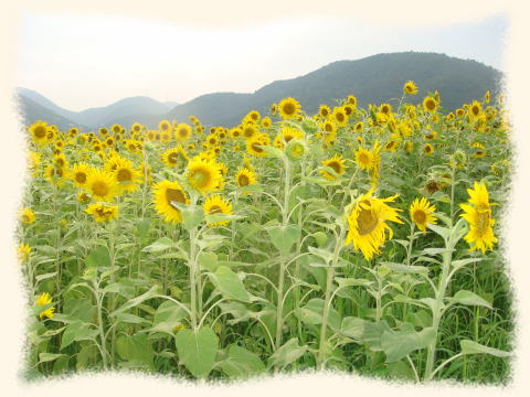 6月26日(金) ひまわり 地元の中学校の裏に立派な向日葵畑出来ている。 以前ここは、ペンペン草の生い茂る、荒れ果てた畑だった。 それならと、知人が従兄弟から畑を、引き受けて、学校の裏でもあるし 「情操教育的にも良くない」と考え 毎年向日葵を植え、育て、咲かせるようになった。 これからという時に、台風で倒れてしまった年もあった。 草に悪戦苦闘し続けた。 最初は通りに面した、一列だけだったけれど、 年々広げて行き、ついに畑一杯になった。 今は次々と大輪の花を咲かせている。 雑草は一本も無くなった。 知人は80歳、押せば倒れそうな人 心だけは大輪の向日葵のように輝いている。 ずっと見ていたから、毎朝見せて貰っているからね。 |