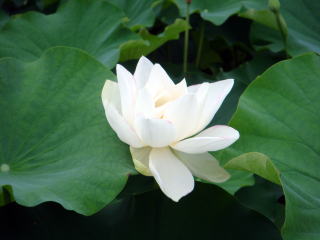 7月29日(水) 晴れ 白い蓮 もうすぐお盆が来ます。 近くに白い蓮の池が有ります。 中に薄いピンクの衣を着た蓮を 見つけました。 本当に泥の中から出て来て こんなに清いのでしょう |