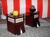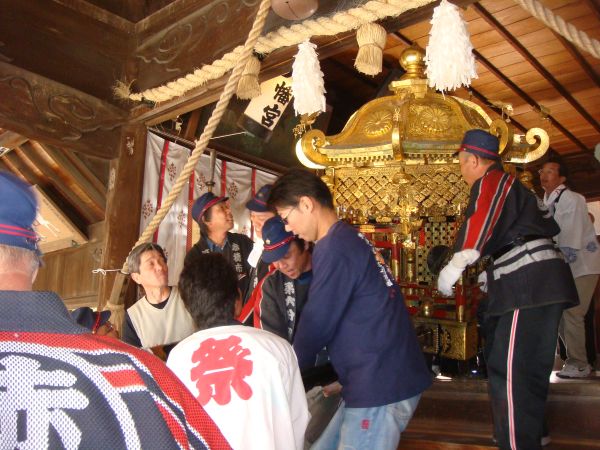 | 集会所での寄せ舞い | お御輿を奉げる |