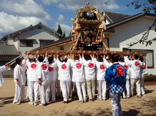 10月11日(日) 晴れ 御崎の秋まつり 朝早くからふれ太鼓が響いていて、気持ちの良い祭り日和だ 太鼓の音がすると落ち着いて居られ無くなる、近くに回って来た。 表に出て行き 近所の人を誘って集会所まで、獅子の寄せ舞いを見に行く 何歳になってもワクワクして、見入ってしまう。 重い獅子頭を持って舞う獅子、力強い太鼓、 天狗の面を被って、調子良く足をハズ弾ませる鼻高 若者の熱演に熱いものを感じる。可愛い唐子も頑張っている。 お御輿はまだかな 親子一緒になって町内を一巡するお御輿・・・ 皆でワッショイ!! ワッショイ!! |