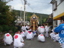 | 雄獅子 | 雌獅子 | 子共 お御輿 | お御輿の宮出し | 皆でお願い |