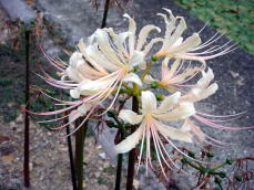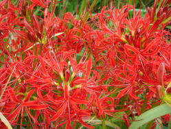 | 2007年 彼 岸 花 彼岸花と言えば赤い花と思っていた。こんなにいろんな色形があるなんて、 何て綺麗で優雅なんでしょう。 綺麗に装ってお花の舞踏会が始まりそう 曼珠沙華という別名もあるそうな あまりにも明るく綺麗な色なので、暗く淋しいイメージが取り払われそう |