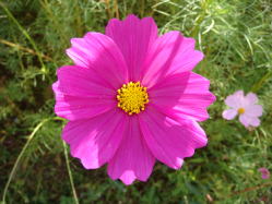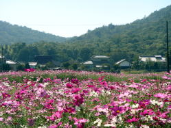 | ○ コスモスの 花に負けざる 笑顔して ○ 坂下りて コスモス拡ごる 峡の里 ○ コスモスや いつまで続く 立話 |