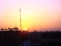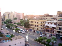 ルクソールのホテルから ビル街・日の出 |