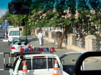 | 検問・・・パトカーの先導 | 一路・・・エドフへ | 傍を走る 列車 |