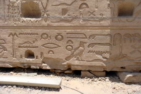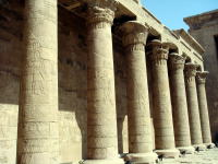 | 巨大な塔門はカルナック神殿に次ぐ規模 | 列柱には神々のレリーフが刻まれている | ハヤブサの形をしたホルス神 |